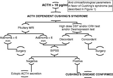 Clinical signs of Cushing’s syndrome include growth of fat pads (collarbone, back of neck, face and trunk), excessive sweating, dilation of capillaries, thinning of the skin, muscle weakness, hirsutism, depression/anxiety, hypertension, osteoporosis, insulin resistance, hyperglycemia, heart disease, and a range of other metabolic disturbances resulting in high morbidity. If inadequately controlled in its severe forms, Cushing’s syndrome is associated with high mortality. The most common form of Cushing’s syndrome is Cushing’s disease which is caused by microadenomas of pituitary corticotropic cells that secrete excess adrenocorticotropic hormone (ACTH).