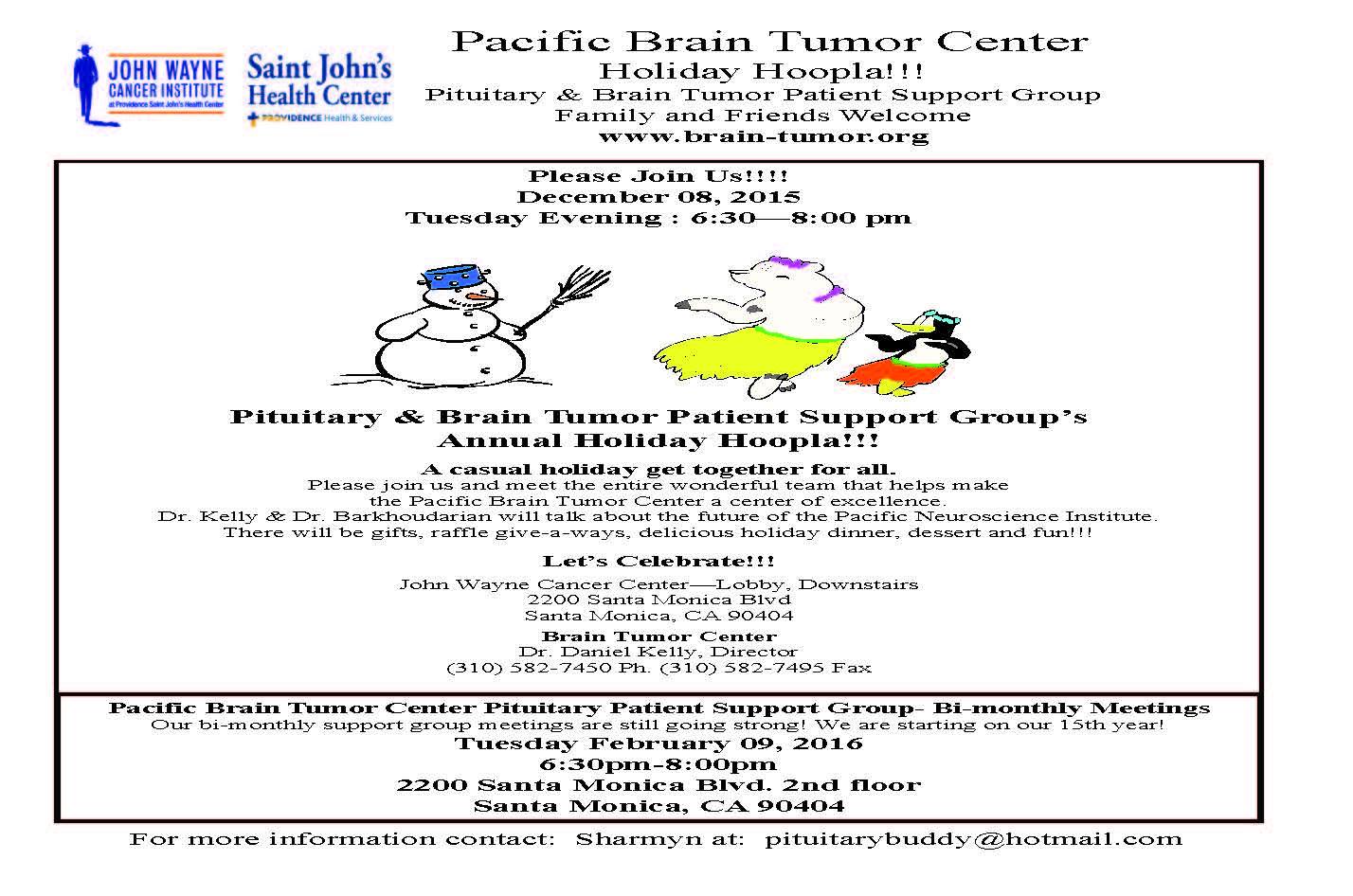 It’s time for the  Pituitary Patient Annual Holiday Party at the Pacific Brain Tumor Center.