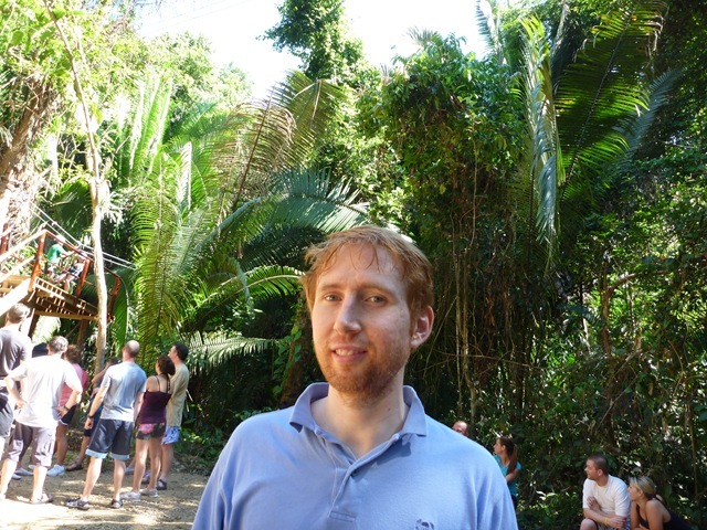 Here we are, after getting our gear off. The people behind Michael are just starting out on their zipline adventure. I thought maybe we could go again…?
